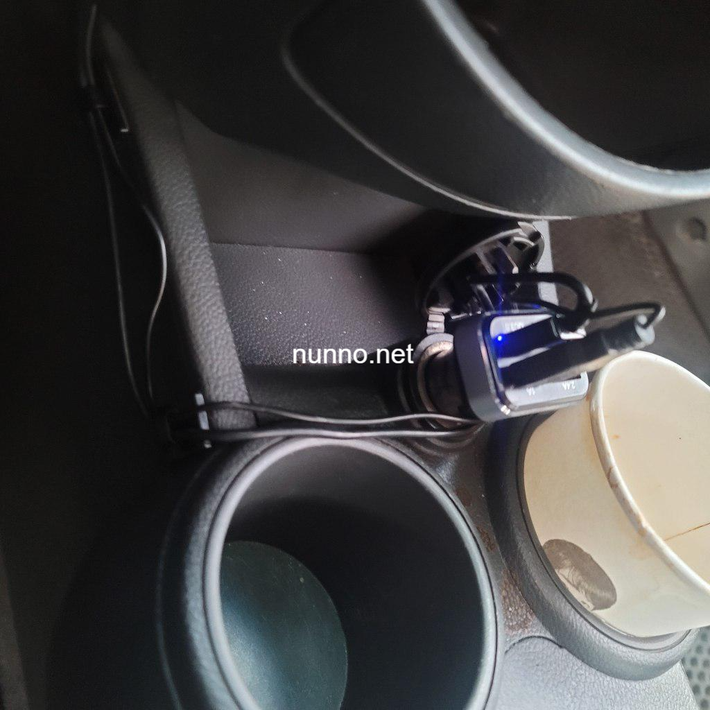 AUX로 가는 선과 휴대폰 충전 거치대용 2개의선이 올라가는 부분 확대