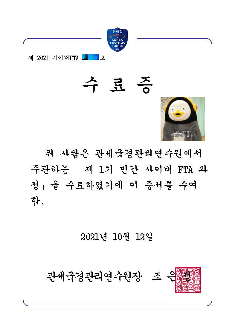 교육안내 – 교육현황 – 기업고객 교육 카테고리 “민간 사이버 FTA” 교육 신청 (교육비 무료)